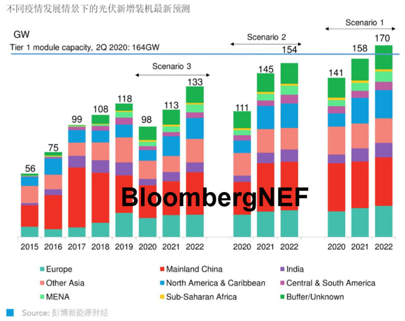 疫情出現(xiàn)多波反彈且其他因素不利的情景下的2020年新增光伏裝機(jī)預(yù)測(cè)
