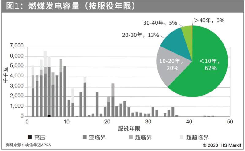 火力發(fā)電仍然是大多數(shù)國家電力發(fā)展計(jì)劃的一部分,因?yàn)樗芴峁┓€(wěn)定、可靠、平價(jià)(因國家而異)的基荷發(fā)電。如圖1所示,目前,該地區(qū)運(yùn)行的燃煤電廠機(jī)組仍相對(duì)年輕。由于95%的電廠目前都服役不到30年,因此東南亞可能沒有幾家電廠會(huì)在未來十年內(nèi)退役。同樣,燃?xì)獍l(fā)電廠也有70%以上服役尚不足20年。到2030年,大多數(shù)現(xiàn)有的煤電和天然氣發(fā)電機(jī)組仍將保持運(yùn)行。