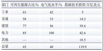 表2 2050能源轉(zhuǎn)型場景下終端用能部門的可再生能源電氣化水平與低碳投資需求(2015—2050)