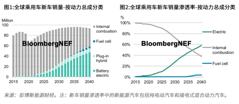 彭博新能源財經(jīng)最新發(fā)布的《新能源汽車市場長期展望》報告指出,到2040年,新能源汽車在全球乘用車銷量的占比預(yù)計達(dá)58%,在乘用車保有量的占比達(dá)31%。除乘用車外,新能源車在公交車保有量的占比將達(dá)67%,在兩輪摩托車占比達(dá)47%,在輕型專用車占比達(dá)24%。