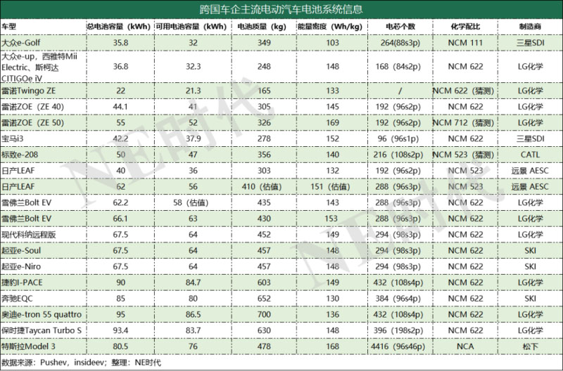 它們的增長都是由配置的車型銷量增長所推動的。國產(chǎn)特斯拉Model 3、奧迪e-tron EV、雷諾Zoe的強勁銷量帶動了LG化學(xué)的增長。大眾e-高爾夫、帕薩特GTE PHEV和寶馬330e使三星SDI的使用量有所增加?,F(xiàn)代Porter II Electric、Soul Booster和起亞Bongo Ⅲ EV推動SKI的增長。