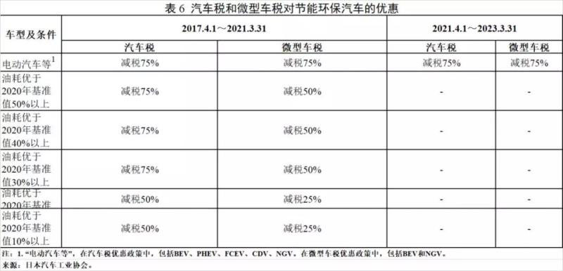 在汽車保有環(huán)節(jié)對節(jié)能環(huán)保汽車給予優(yōu)惠。汽車稅針對排量在0.66L以上的汽車征收,乘用車每年按照排量征稅,共分為10個區(qū)間,排量越大,征稅越多;2019年10月1日起,由于消費稅率的上調(diào),為降低消費者稅負,日本下調(diào)汽車稅稅率,調(diào)整后乘用車稅額為25000—110000日元/年(約合1750—7700元人民幣/年),其中小排量乘用車稅率下調(diào)力度更大。微型汽稅是定額稅,針對0.66L及以下的汽車征收,私人微型乘用車每年稅額為10800日元(約合756元人民幣)。重量稅依據(jù)重量征稅,私家乘用車稅率約為每0.5噸4100日元/年(約合287元人民幣/年),微型車稅率為定額3300日元/年(約合231元人民幣/年);車齡達到13年的車輛需繳納更高的重量稅,以加速老舊車的淘汰。為支持汽車向節(jié)能環(huán)保發(fā)展,包括下一代汽車在內(nèi)的符合節(jié)能環(huán)保要求的汽車均可享受不同程度的汽車稅、微型車稅、重量稅減免措施。