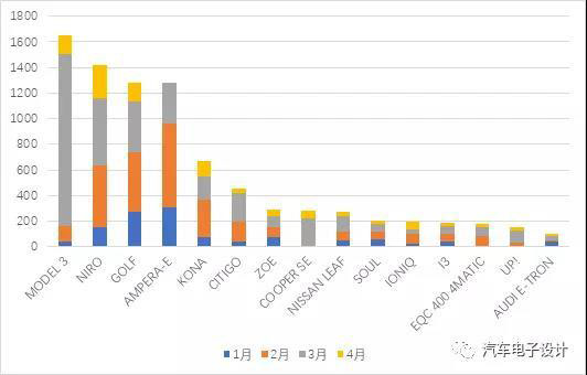 在細(xì)分車型的角度來看,基本主要的車型都陷入了低銷量狀態(tài),比如Model 3又回到了100多臺(tái)的狀態(tài)。而且整體的分布比較少,這個(gè)去年特斯拉第一大歐洲市場(chǎng),今年會(huì)陷入到一個(gè)群雄割據(jù)的局面,排在后面的Niro EV+KONA、E-Golf(按照MEB目前的狀態(tài),E-golf還要多堅(jiān)持一段時(shí)間)、Ampera-E。很奇怪E-tron和奔馳EQC這些豪華電動(dòng)汽車在荷蘭賣得不是特別好。