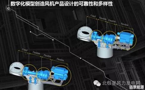再有一點(diǎn)是,通過(guò)更加接近真實(shí)情況的仿真模擬,Digital Twin?引擎對(duì)系統(tǒng)結(jié)構(gòu)進(jìn)行了精確的分析,從而在設(shè)計(jì)階段就通過(guò)反復(fù)迭代計(jì)算,避免了低估傳動(dòng)系和結(jié)構(gòu)件上傳遞的動(dòng)態(tài)荷載情況的發(fā)生。由此而來(lái)的一個(gè)重大改變是,傳統(tǒng)大量復(fù)雜耗時(shí)數(shù)年風(fēng)機(jī)開(kāi)發(fā)周期被Digital Twin?的數(shù)字引擎縮短到半年,大量可能逃逸到量產(chǎn)的設(shè)計(jì)缺陷也在設(shè)計(jì)模型階段被消除。