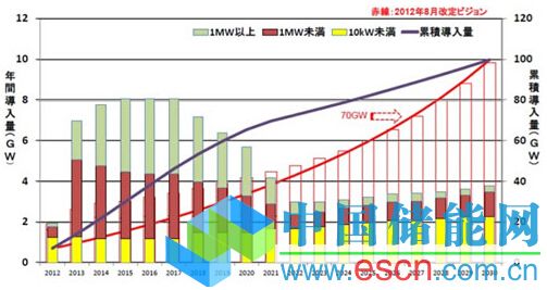 JPEA于2013年12月發(fā)行了“JPEA PV Outlook 2030”,提出了“2030年日本的光伏發(fā)電累計導(dǎo)入量目標(biāo)為100GW”。2015年4月又出了其姊妹篇,將2013年版中2020年日本的累計導(dǎo)入量49.4GW的預(yù)測上調(diào)到了65.7GW。