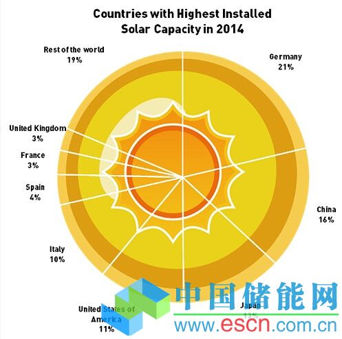 自2000年起,德國的可再生能源法刺激了太陽能產(chǎn)業(yè)迎來黃金發(fā)展期。其中最重要的一點(diǎn),就是保障所有太陽能項(xiàng)目的電價能夠以顯著高于市場價格的水平出售給電網(wǎng)運(yùn)營商。但是,隨著中歐太陽能貿(mào)易摩擦愈演愈烈,就目前來看,德國仍然是世界上領(lǐng)先的太陽能市場。但是,較之10年前,德國的太陽能產(chǎn)業(yè)已經(jīng)蒙上了一層陰影。統(tǒng)計(jì)顯示,2014年,歐洲太陽能電池制造商的產(chǎn)能占全球的8%。但是,中國的產(chǎn)能占全球的64%。