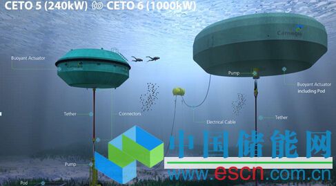 這種波浪能技術(shù)能夠把海洋涌動(dòng)的海浪轉(zhuǎn)換為零污染的可再生能源和零污染的淡化水,卡內(nèi)基海浪能源公司以希臘海洋女神的名字將之命名為CETO。公司表示,這套系統(tǒng)不同于其他波浪能裝置,因?yàn)榘惭b在海底,這樣可以遠(yuǎn)離暴風(fēng)雨帶來(lái)的損害,與此同時(shí)從岸上也是看不到的,減少了陸地景觀的破壞,也更加安全。