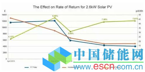 Green Business Watch的編輯Alastair Kay評(píng)論道:“我們希望將度電補(bǔ)貼費(fèi)率、成本降低、電價(jià)增長(zhǎng)等多重因素對(duì)太陽能系統(tǒng)投資的影響進(jìn)行比較。從比較結(jié)果可以很清楚地看出現(xiàn)今家用太陽能系統(tǒng)能提供比2010年剛推出度電補(bǔ)貼的時(shí)候更誘人的回報(bào)率?!?