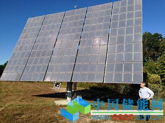 北卡羅萊納州漢德森(Henderson),斯科特·伯勒斯(ScottBurroughs)站在一塊Semprius的太陽能系統(tǒng)前