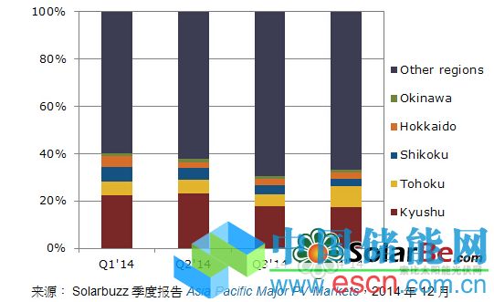Solarbuzz分析師胡丹指出:“雖然在三季度末,日本五個區(qū)域電力公司提出對非居民項(xiàng)目的并網(wǎng)審批暫停,但我們認(rèn)為仍不會顯著影響2015年日本市場需求,主要原因是已經(jīng)獲批的光伏儲備項(xiàng)目量較大,并且這些項(xiàng)目不受暫停并網(wǎng)審批的影響?!睋?jù)統(tǒng)計(jì)2014年這五個區(qū)域電力公司的光伏裝機(jī)需求約占整個日本市場的35%左右。