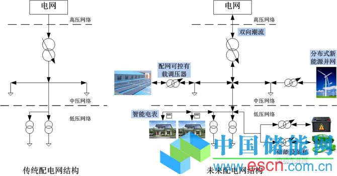 傳統(tǒng)配電網(wǎng)是單向電流流動(dòng),配電網(wǎng)只接收負(fù)荷,變壓器為普通配電網(wǎng)臺區(qū)變壓器,配以簡單的保護(hù)和自動(dòng)化、通信設(shè)備。未來配電網(wǎng),即所謂的智能配電網(wǎng)擁有復(fù)雜的分布式供電系統(tǒng),造就了復(fù)雜的雙向潮流,需要安裝智能電表等測量裝置,并在低壓側(cè)有儲能設(shè)備和電動(dòng)汽車并網(wǎng),需要配電網(wǎng)對低壓端口進(jìn)行調(diào)控和雙向通信,不論中壓還是低壓都將配有復(fù)雜的線路保護(hù)。這些巨大的變化發(fā)生之快,是很多配電網(wǎng)運(yùn)營商猝不及防的。至今,還只有少數(shù)配電網(wǎng)運(yùn)營商擁有效率極高的監(jiān)控系統(tǒng),不論配電網(wǎng)運(yùn)營商還是輸電網(wǎng)運(yùn)營商未來必須要快速地和經(jīng)常性地應(yīng)對動(dòng)態(tài)的發(fā)電曲線、潮流逆向、配網(wǎng)側(cè)頻繁無功補(bǔ)償裝置投切和電壓調(diào)節(jié)等新的挑戰(zhàn)。