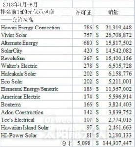 中國(guó)儲(chǔ)能網(wǎng)訊:不久前,太陽(yáng)能發(fā)電行業(yè)是瓦胡島最熱門(mén)的建筑行業(yè)。今天,它沉沒(méi)了。根據(jù)Honolulu市、縣規(guī)劃許可部門(mén)提供的2014年1月到6月光伏發(fā)電系統(tǒng)許可數(shù)據(jù),已發(fā)布光伏許可總數(shù)比去年同期下降了43%,且項(xiàng)目總值下降了50%以上。