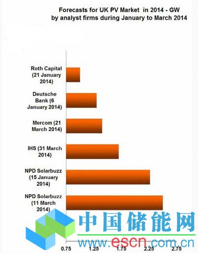 根據(jù)NPDSolarbuzz,預(yù)計2014年英國將安裝約2.5GW的光伏,而PV-Tech沒有獲得其他預(yù)期安裝量高于1.7GW。