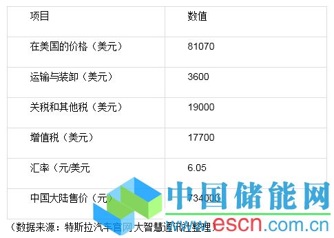 表一、特斯拉汽車(chē)國(guó)內(nèi)起售價(jià)構(gòu)成情況