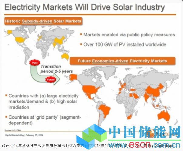 管理層強調(diào),有著大型電力市場及日益增長的需求的國家,以及有著高太陽能輻照水平的國家,未來二至五年將推動光伏采納。其中許多國家將在該期限中發(fā)現(xiàn)光伏實現(xiàn)市電平價。
