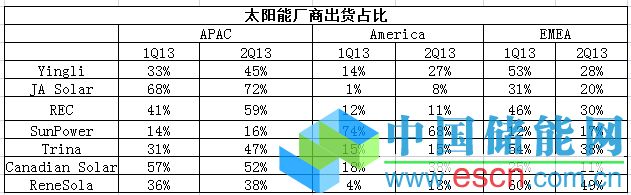 中國儲能網(wǎng)訊:受到中歐貿(mào)易紛爭以及亞洲市場崛起的影響,太陽能廠商在1H13紛紛重新啟動企業(yè)策略布局。全球市場研究機構(gòu)TrendForce旗下新能源事業(yè)處EnergyTrend針對上半年各太陽能廠出貨及營收調(diào)查顯示,中國大廠明顯降低歐洲出貨占比,將重心轉(zhuǎn)向中國內(nèi)需市場以及日本等其他亞洲市場。