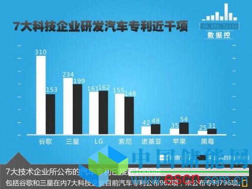 目前包括谷歌、三星、LG、索尼、諾基亞、蘋果以及黑莓在內(nèi)的7家廠商,已在美國申請并公布了962項(xiàng)設(shè)計(jì)汽車領(lǐng)域的專利技術(shù),其中大部分涉及車載導(dǎo)航應(yīng)用、新能源汽車和電動(dòng)車型驅(qū)動(dòng)等方面。而在上市科技企業(yè)中谷歌共擁有310項(xiàng)已公布的專利項(xiàng)目和153項(xiàng)尚未公布的專利技術(shù),其也成為了在汽車領(lǐng)域研發(fā)專利最多的IT企業(yè)。