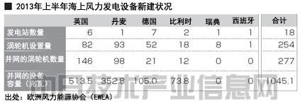歐洲風(fēng)能協(xié)會7月12日公布了歐盟各國2013年上半年海上風(fēng)力發(fā)電設(shè)備建設(shè)的最新進(jìn)度數(shù)據(jù)。