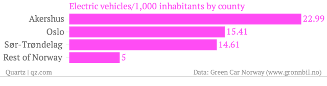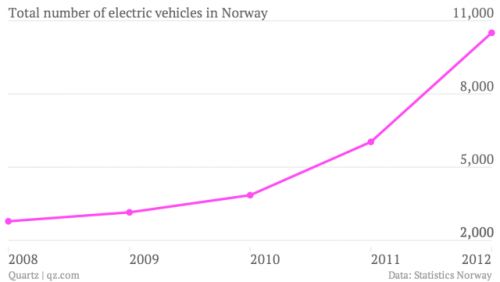 但是,挪威在2012年的電動汽車銷量占該國汽車總銷量的3%,而在美國這一數(shù)字則僅為0.1%。可見,挪威的電動汽車數(shù)量雖然并不出奇,但人均占有量是十分之高的,甚至是歐洲最高的國家。