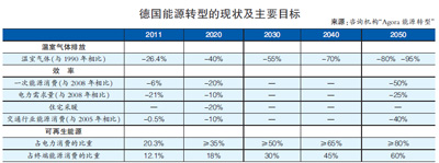 重大的轉(zhuǎn)變發(fā)生在2010年,當年德國通過的一項新法案將核電站的關閉時間由原定的2022年延遲到使用期滿。2011年3月的福島核事故為德國敲響了警鐘,使這項不得人心的決議僅存活了六個月就慘遭淘汰,也促使醞釀20年之久的轉(zhuǎn)型計劃終獲突破。5月29日,德國總理默克爾做出了一個歷史性決定——2022年前關閉境內(nèi)所有17座核電站,德國將成為第一個明確去核化國家,并宣布了一項雄心勃勃的新能源計劃:2022年前,將太陽能、風能等可再生能源的比重提高到35%左右。這就是之后被世人津津樂道的德國“能源轉(zhuǎn)型”。(“能源轉(zhuǎn)型”現(xiàn)狀與目標見圖表)