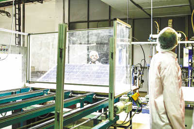 中國儲能網(wǎng)訊:圖為Tata Power Solar Systems位于印度班加羅爾的一處太陽能電池板加工廠。