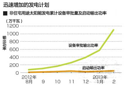 德國(guó)作為太陽(yáng)能發(fā)電大國(guó)而聞名,其累計(jì)裝機(jī)容量為3288萬(wàn)千瓦(2013年2月)。而日本如果從通過設(shè)備認(rèn)證的發(fā)電容量來看,僅用8個(gè)月就達(dá)到了德國(guó)的3分之1。這遠(yuǎn)遠(yuǎn)超過許多相關(guān)人士事前的預(yù)測(cè)。不過,問題在于,雖然如此大量的設(shè)備通過認(rèn)證,但實(shí)際能夠發(fā)多少電呢?