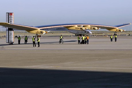 今年2月28日,拆散成10個(gè)部分的“太陽(yáng)能驅(qū)動(dòng)號(hào)”從瑞士運(yùn)抵舊金山,工程師們?cè)谀铺貦C(jī)場(chǎng)完成了安裝,4月2日進(jìn)行第一次試飛。預(yù)計(jì)5月初從舊金山出發(fā)途徑鳳凰城、達(dá)拉斯、華盛頓DC,大約7月抵達(dá)紐約肯尼迪國(guó)際機(jī)場(chǎng)。