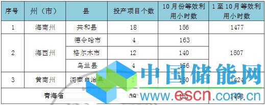 中國(guó)儲(chǔ)能網(wǎng)訊:選取可再生能源信息資源數(shù)據(jù)庫(kù)中青海省各市(縣)已投產(chǎn)光伏項(xiàng)目10月份利用小時(shí)數(shù)進(jìn)行分析。結(jié)果顯示,各市(縣)10月份等效利用小時(shí)數(shù)均超過(guò)140小時(shí),2014年1至10月全省平均等效利用小時(shí)數(shù)為1498小時(shí),處于全國(guó)領(lǐng)先水平。
