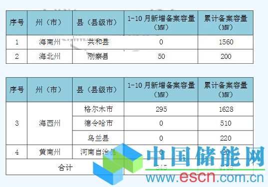 據(jù)可再生能源信息資源數(shù)據(jù)庫(kù)統(tǒng)計(jì),截至2014年10月,青海省各市(縣)累計(jì)備案容量為414萬(wàn)千瓦,主要分布在海西州的格爾木市和海北州的共和縣。截至10月底,青海省2014年新增備案容量為34.5萬(wàn)千瓦,其中格爾木市新增備案容量最多,為29.5萬(wàn)千瓦。2014年1至10月具體備案情況見(jiàn)表1。