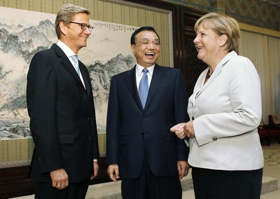 國家主席胡錦濤昨日下午在北京會(huì)見默克爾時(shí)祝賀第二輪中德政府磋商取得成功。當(dāng)天,在由國務(wù)院總理溫家寶與默克爾共同主持的第二輪中德政府磋商中,中德雙方在經(jīng)濟(jì)關(guān)系、政治關(guān)系以及其他重要合作領(lǐng)域達(dá)成多項(xiàng)共識(shí),雙方商定設(shè)立中德經(jīng)濟(jì)顧問委員會(huì),舉辦投資合作論壇,并在今年10月舉行下一輪外長級(jí)戰(zhàn)略對(duì)話。