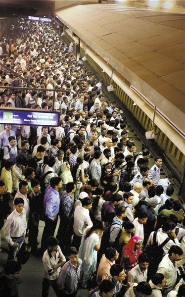 7月30日,印度新德里,停電導(dǎo)致城鐵運力大減,大量乘客滯留。