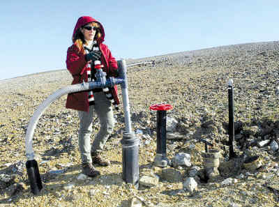 當(dāng)?shù)毓ぷ魅藛T展示哥倫比亞市的垃圾填埋循環(huán)系統(tǒng)。 |