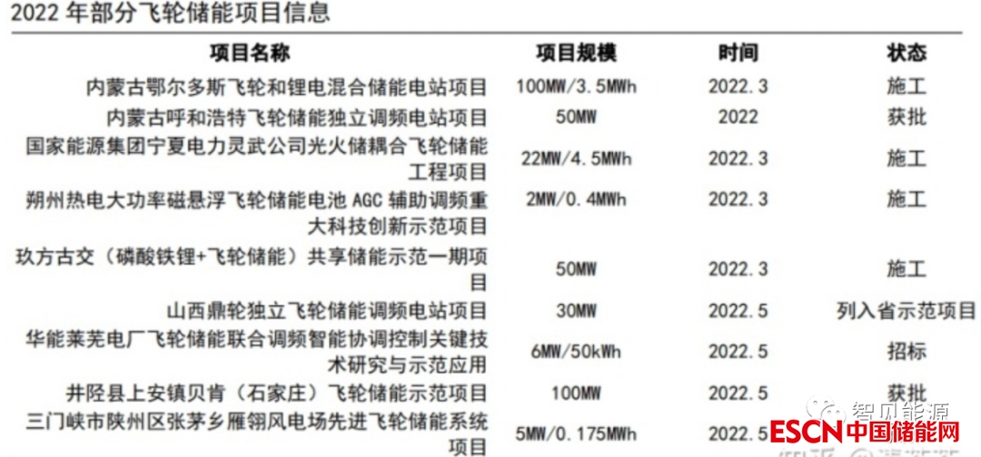 根據(jù)《2022儲(chǔ)能產(chǎn)業(yè)應(yīng)用研究報(bào)告》,目前 2021 年全球儲(chǔ)能市場(chǎng)裝機(jī)功率 205.3GW,飛輪儲(chǔ)能占比僅為 0.47%,仍處于非主流的一種儲(chǔ)能方式。 2022 年 3 月, 國(guó)家發(fā)改委、國(guó)家能源局發(fā)布關(guān)于印發(fā)《“十四五”新型儲(chǔ)能發(fā)展實(shí)施方案》,提出要重點(diǎn)建設(shè)飛輪儲(chǔ)能技術(shù)試點(diǎn)示范項(xiàng)目,到 2025 年兆瓦級(jí)飛輪儲(chǔ)能等機(jī)械儲(chǔ)能技術(shù)逐步成熟。國(guó)內(nèi)已有部分飛輪儲(chǔ)能項(xiàng)目獲批或在建。