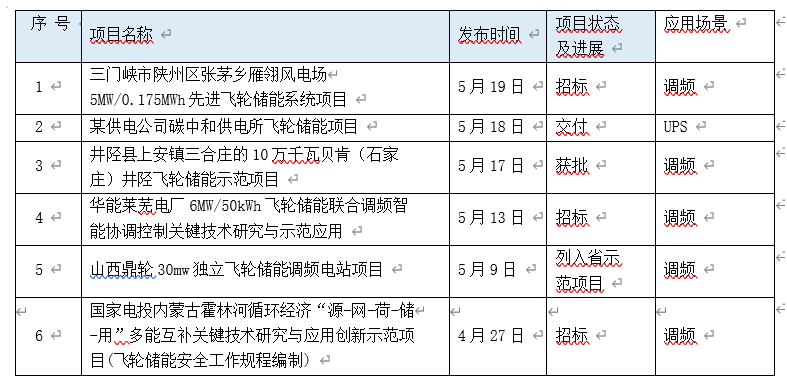 2022 年 2-5 月(部分)飛輪儲能項目進展