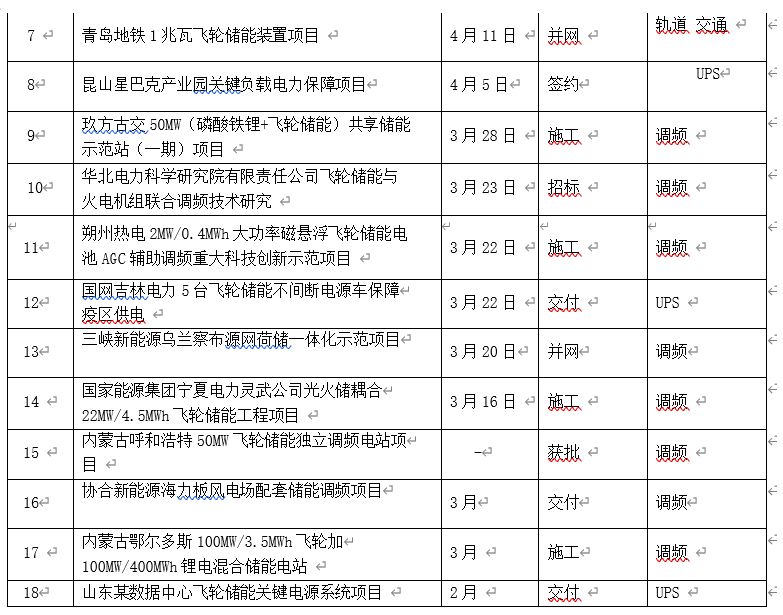 據(jù)中國化學(xué)與物理電源行業(yè)協(xié)會儲能應(yīng)用分會產(chǎn)業(yè)政策研究中心不完全統(tǒng) 計,2-5 月飛輪儲能項目 18 個(已列表),其中調(diào)頻項目 14 個,UPS 項目 4個,軌道交通項目 1 個。