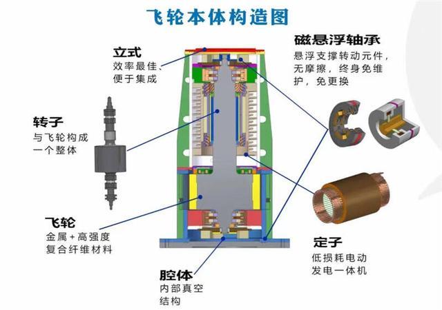 飛輪儲能屬于物理儲能,采用磁懸浮技術(shù),飛輪轉(zhuǎn)子在真空室內(nèi),無風(fēng)阻環(huán)境下運行。飛輪儲能裝置安裝于軌道交通牽引變電所內(nèi),當列車進站制動時,飛輪吸收能量,將電能轉(zhuǎn)換為動能,轉(zhuǎn)速高達每分鐘20000轉(zhuǎn);當列車出站加速時,飛輪釋放能量,將動能轉(zhuǎn)化為電能,釋放能量供列車使用,具有極佳的節(jié)能和穩(wěn)壓效果。