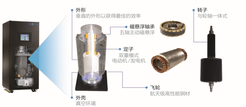 微控磁懸浮儲(chǔ)能飛輪產(chǎn)品采用五軸主動(dòng)磁懸浮的軸承體系,飛輪在密閉的真空容器中處于無(wú)接觸的完全磁懸浮狀態(tài),以每分鐘高達(dá)41000轉(zhuǎn)的轉(zhuǎn)速高速旋轉(zhuǎn),擁有業(yè)界最高的功率密度。產(chǎn)品充放電循環(huán)次數(shù)超過(guò)200萬(wàn)次,使用壽命長(zhǎng)達(dá)20年。
