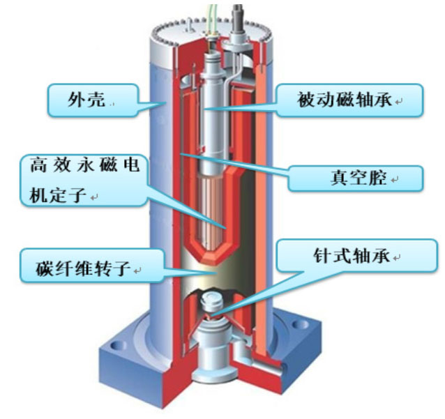 1)被動(dòng)磁軸承技術(shù):無需電控單元、非接觸、無磨損、免維護(hù)、簡(jiǎn)單可靠。