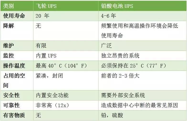 下表7顯示了飛輪UPS和電池UPS之間的比較: