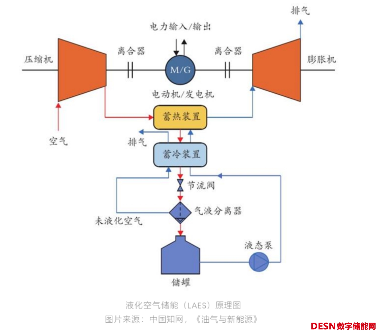壓縮空氣儲(chǔ)能(CAES)在用電低谷,通過(guò)壓縮機(jī)把空氣壓縮成高壓空氣,在用電高峰,釋放高壓空氣,驅(qū)動(dòng)膨脹機(jī)就可以驅(qū)動(dòng)發(fā)電機(jī)發(fā)電。