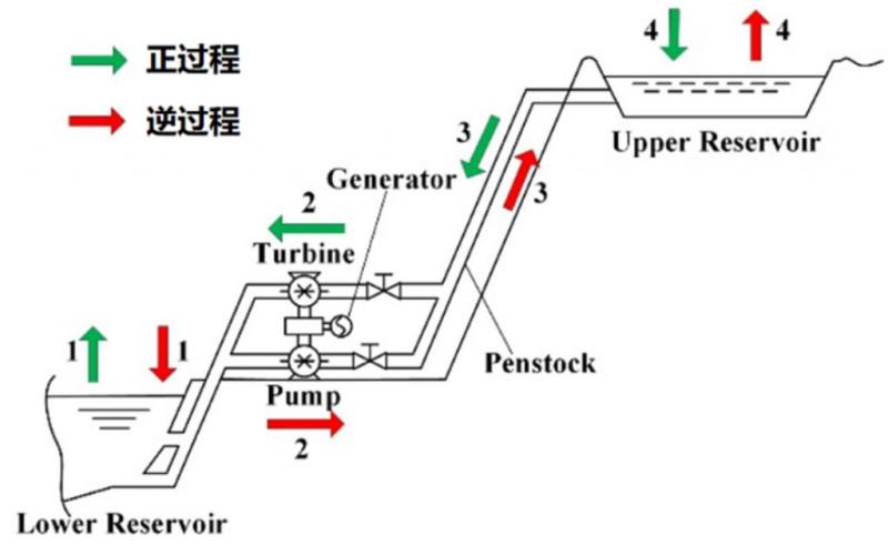 除了 " 切斷 " 熱力 / 化工循環(huán)可產(chǎn)生儲(chǔ)能系統(tǒng)外,儲(chǔ)能系統(tǒng)還可由一般自發(fā)動(dòng)力 / 傳熱 / 化學(xué)等過(guò)程和其逆過(guò)程的結(jié)合而來(lái),以抽水蓄能系統(tǒng)為例,其正向工作過(guò)程為自發(fā)的水利發(fā)電過(guò)程,逆向過(guò)程為通過(guò)抽水泵將低位水抽向高位蓄水庫(kù)的過(guò)程,這種將產(chǎn)能過(guò)程和其逆過(guò)程合并形成儲(chǔ)能系統(tǒng)是儲(chǔ)能系統(tǒng)的另一種組織形式。