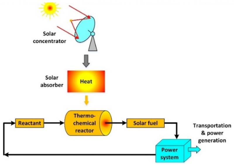例如,太陽(yáng)能熱化學(xué)儲(chǔ)能系統(tǒng)針對(duì)典型熱化學(xué)循環(huán)過(guò)程進(jìn)行循環(huán)的切斷,實(shí)現(xiàn)了能量的時(shí)間平移,在能多時(shí),利用熱化學(xué)原理,吸收太陽(yáng)能并將其轉(zhuǎn)化為穩(wěn)定合成氣的化學(xué)能進(jìn)行儲(chǔ)存,能少時(shí),通過(guò)儲(chǔ)存合成氣的氧化 / 分解等反應(yīng)釋放其化學(xué)能。