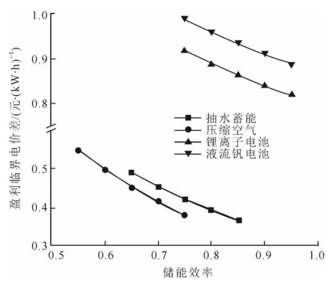 (儲(chǔ)能效率對(duì)盈利臨界電價(jià)差的影響)