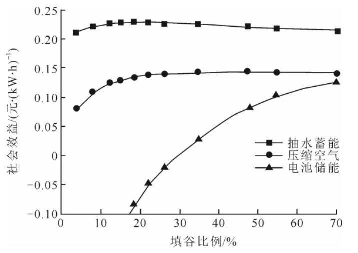 (最優(yōu)填谷比例下儲(chǔ)能系統(tǒng)各項(xiàng)社會(huì)效益占比)