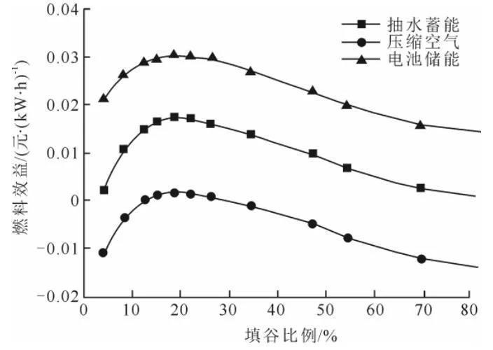 (最優(yōu)填谷比例下各項(xiàng)燃料效益比例)