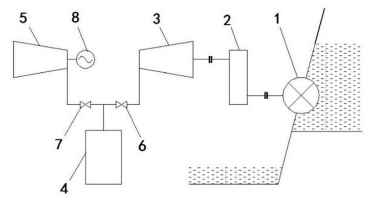 水力壓縮空氣儲能系統(tǒng)能夠通過水力壓縮空氣儲能,將水電站棄水轉(zhuǎn)化為空氣勢能儲存起來。并在需要供電時,單獨進(jìn)行空氣膨脹發(fā)電或輔助水力發(fā)電進(jìn)行供電,有效提高了水電站蓄水力用率,降低了能源浪費。