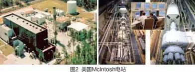第二座是于1991 年投入商業(yè)運行的美國McIntosh 電站(圖2)。其儲氣洞穴在地下450 米,總?cè)莘e達(dá)5.6×105m3,儲氣壓力約為75bar。該電站壓縮機功率為50MW,膨脹機功率為110MW,可實現(xiàn)連續(xù)41 小時充氣和26 小時發(fā)電,機組從啟動到滿負(fù)荷約需9 分鐘, 系統(tǒng)效率為54%。另外,日本于2001 年在北海道空知郡投運了上砂川町2MW 壓縮空氣儲能示范項目。其余國家如瑞士、法國、英國、意大利、俄羅斯、以色列、芬蘭、南非和韓國等國家也在積極開發(fā)壓縮空氣儲能電站。