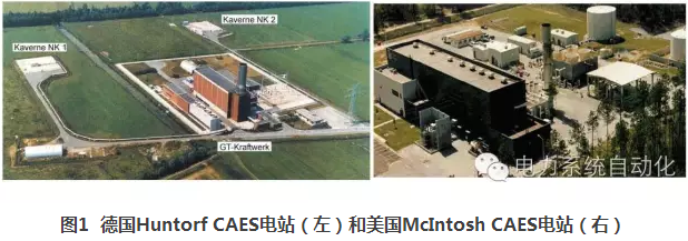 壓縮空氣儲能(compressedairenergystorage,CAES)對地理條件無特殊要求,建造成本和響應速度與抽水蓄能電站相當,使用壽命長,儲能容量大,是一種具有推廣應用前景的大規(guī)模儲能技術。國外已有兩座大型CAES電站分別在美國和德國(如圖1所示)投入商業(yè)運行,多座電站正在建設之中。此外,多家研究機構及公司開展了該方面的研究,提出了許多創(chuàng)新性的CAES系統(tǒng)技術方案。
