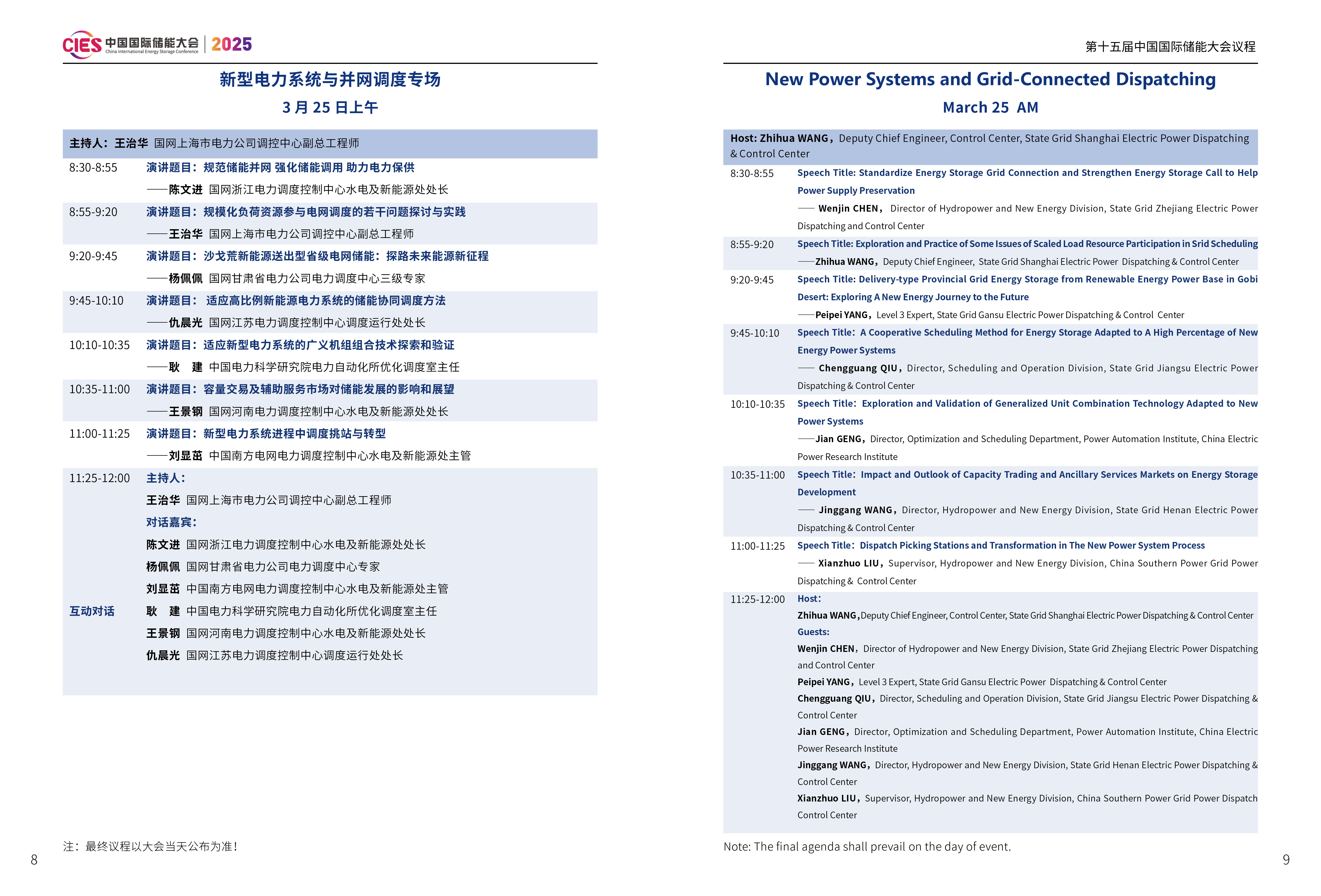 CIES2025儲能大會將設(shè)置:大會開幕式暨特邀院士專家報告、數(shù)智化配電網(wǎng)與新型儲能融合創(chuàng)新、新型電力系統(tǒng)與并網(wǎng)調(diào)度、新型儲能與新能源大基地協(xié)同發(fā)展、國際儲能、電力輔助服務(wù)、現(xiàn)貨交易及容量市場、工業(yè)綠色微電網(wǎng)、國家儲能標準宣貫、數(shù)智化新型儲能系統(tǒng)集成解決方案(上、下)、儲能消防、安全與檢測認證、新型儲能資本與投資、液流電池與長時儲能、混合儲能、2025 新型儲能系列研究報告暨行業(yè)百強發(fā)布、全球化新型儲能供應(yīng)鏈機遇與挑戰(zhàn)、數(shù)智化工商業(yè)儲能解決方案與商業(yè)案例、虛擬電廠與車網(wǎng)互動、海外儲能渠道開發(fā)與商業(yè)機遇、構(gòu)網(wǎng)型儲能系統(tǒng)及項目建設(shè)、儲能專用電池與ESG、新品發(fā)布會等23個專場,以下為新型電力系統(tǒng)與并網(wǎng)調(diào)度專場議程(最終議程以大會當天發(fā)布為準)。