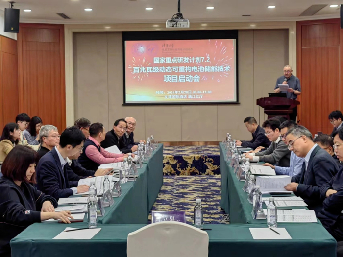 中國儲能網(wǎng)訊:2月28日上午,由清華大學牽頭、電機系研究員慈松為項目負責人的國家重點研發(fā)計劃“儲能與智能電網(wǎng)技術”重點專項“7.2百兆瓦級動態(tài)可重構電池儲能技術(共性關鍵技術)”(2023YFB2407900)項目啟動會在北京市順利召開。項目承擔單位還包括中國科學院電工研究所、西安交通大學、北京理工大學、華電內蒙古能源有限公司、國網(wǎng)江蘇省電力有限公司、中國移動通信集團設計院有限公司、云儲新能源科技有限公司、北京索英電氣技術股份有限公司和合肥國軒高科動力能源有限公司,形成由10家國內領域內優(yōu)勢單位組成的產-學-研-用、信息-能源交叉融合的聯(lián)合攻關團隊。